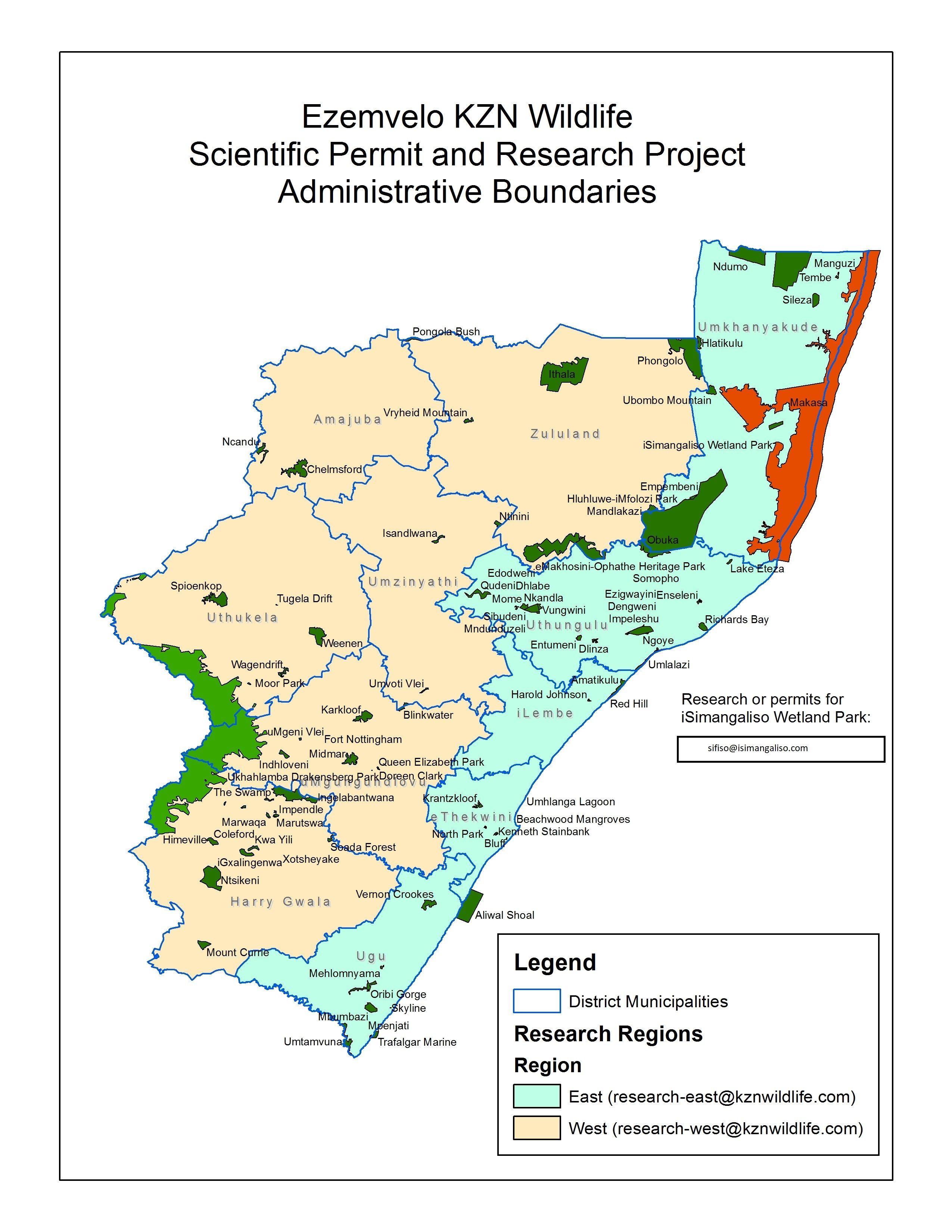 All research conducted in Ezemvelo KZN Wildlife (EKZNW) protected areas must be registered and approved prior to commencement. In addition, it is a legal requirement that collection permits must be obtained whenever biological specimens are collected.